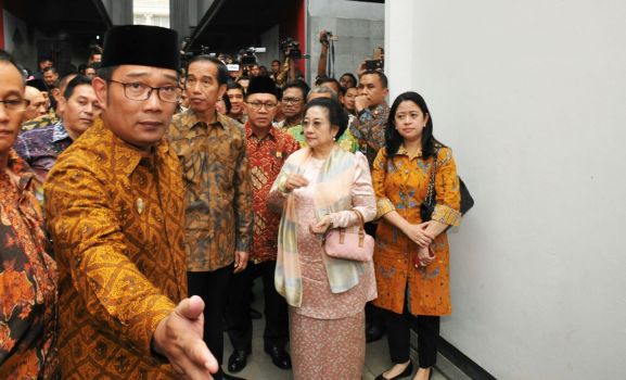 Presiden RI Joko Widodo dan Ibu Negara Iriana Jokowi didampingi seluruh Pimpinan MPR RI, Ketua lembaga-lembaga negara, Presiden Kelima RI Megawati Soekarnoputri dan beberapa menteri, berjalan kaki melakukan napak tilas ke penjara Banceuy Bandung.