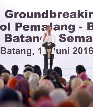 Hal ini disampaikan Kepala Negara ketika memberikan sambutan pada Groundbreaking Ruas Tol Pemalang-Batang dan Batang-Semarang di Desa Pasekaran, Kecamatan Batang, Kabupaten Batang, Provinsi Jawa Tengah, Jumat (17/6).