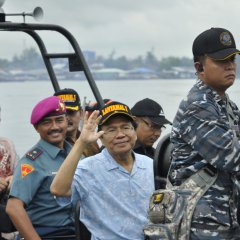 "Tadi Pak Menteri naik kapal sipil, yang ada tutupnya dan yang bagus. Karena hujan deras kali sewaktu berangkat tadi. Kalau tidak hujan, naik Sea Rider juga perginya (dari Pelabuhan Belawan)," kata Kadis Penerangan Lantamal Belawan, Mayor Laut Sahala Sinaga seperti dikutip