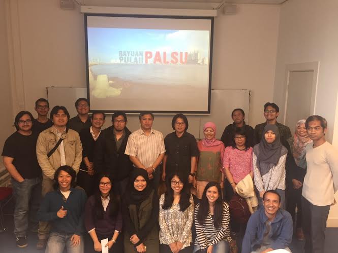 Sebelum diskusi, para pelajar Indonesia tersebut menyaksikan pemutaran film Rayuan Pulau Palsu yang diproduksi oleh WatchDoc. Film yang disutradarai oleh Randi Hernando tersebut mengisahkan tentang nelayan-nelayan di Muara Angke yang harus berhadapan dengan kekuatan para pemodal yang melakukan ekspansi properti lewat reklamasi di Teluk Jakarta.