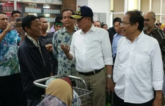 Menteri Perhubungan, Ignasius Jonan, bersama Menko Maritim dan Sumber Daya, Rizal Ramli, meninjau kegiatan mudik warga Indonesia di Pelabuhan Kukup Johor dan Pelabuhan Stulang Laut, Johor Bahru, Malaysia, Senin (4/7). Kemenhub RI