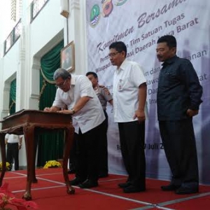 Penandatanganan juga dilakukan kepala Kanwil Otoritas Jasa Keuangan (OJK) Jabar, Kapolda Jabar, Kajati Jabar, dan Kanwil Depag Jabar.