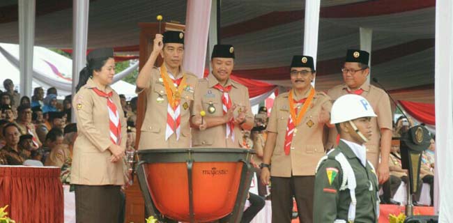 "Saya ingin mengucapkan selamat ulang tahun yang ke-55 kepada seluruh anggota Gerakan Pramuka di seluruh Tanah Air baik yang berada di pelosok desa sampai di kantor-kantor perwakilan di luar negeri," kata Jokowi.