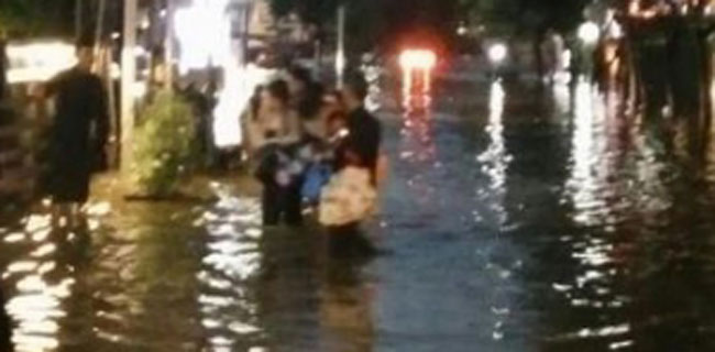 Informasi dari warga, biasanya butuh waktu tiga jam lebih untuk air surut dan kembali normal. Banjir menerjang sejak pukul 6 sore WIB dan mencapai setinggi betis kaki orang dewasa.
