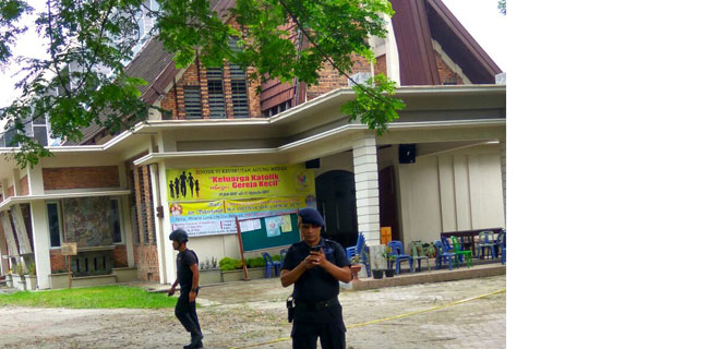 "Karena ledakan kecil itu, jadi ketahuan, akhirnya pelaku berdiri ke altar dan mengejar pastor sambil menenteng senjata tajam," kata Randa.
