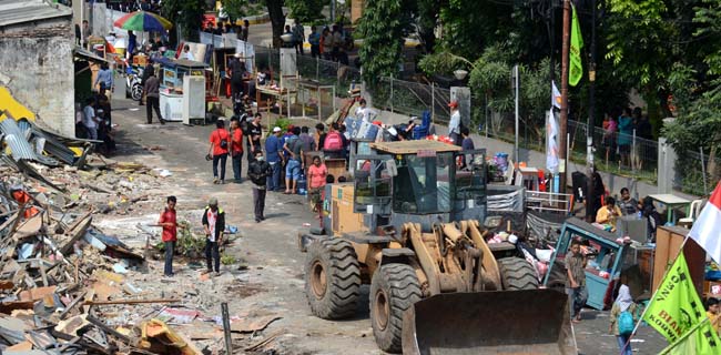 Dalam pembongkaran yang dilakukan Satpol PP tadi pagi, Ilyas sempat pingsan lantaran rumah yang dibangunnya bersama sang istri, Darnis (72), diratakan dengan alat berat.