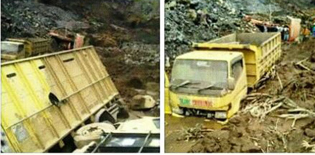 Longsoran sudah mulai terjadi di galian pasir Galunggung milik CV Mitra Mandiri di Kampung Sigebeg, Desa Linggajati, Kecamatan Sukaratu, Kabupaten Tasikmalaya. Sejumlah truk pasir diterjang longsor. Akibatnya beberapa pekerja mengalami luka-luka.