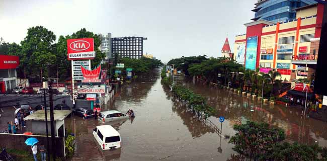 "Kendaraan yang sedang melintas di jalan terendam banjir. Kendaraan yang parkir di BTC Mall juga terendam banjir. Bahkan beberapa mobil terseret banjir seperti layaknya diterjang tsunami kecil di jalan," kata Kepala Pusat Data dan Humas Badan Nasional Penanggulangan Bencana (BNPB) Sutopo Purwo Nugroho dalam keterangannya.