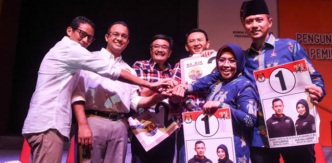 Pilkada DKI Jakarta 2017 diikuti tiga pasangan calon gubernur dan calon wakil gubernur. Tiga cagub dan cawagub itu adalah, Agus Harimurti Yudhoyono-Sylviana Murni (nomor urut 1), Basuki Tjahaja Purnama-Djarot Saiful Hidayat (nomor urut 2), dan Anies Baswedan-Sandiaga Uno (nomor urut 3).