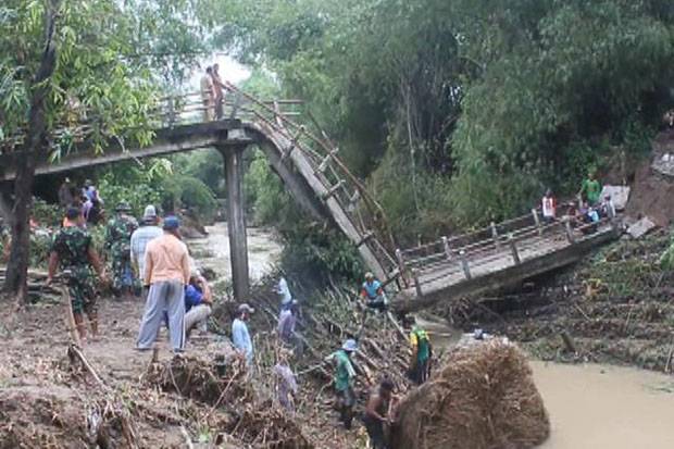 Dampak jembatan putus membuat akses jalan menuju Desa Suru Kecamatan Geyer dengan Desa Karangsono terhambat.