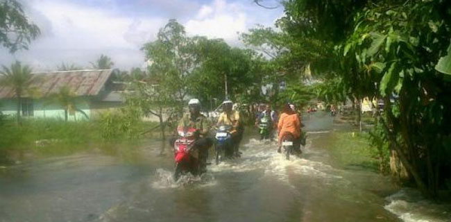 Banjir tersebut menyusul hujan dengan intensitas tinggi disertai dengan pasang laut menyebabkan sungai meluap.