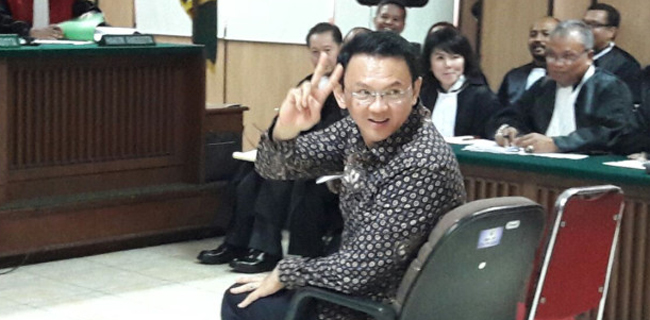 Alasannya, Ahok mengacungkan salam "dua jari" kepada pengunjung di awal persidangan. Salam "dua jari" itu identik dengan nomor urut Ahok-Djarot di Pilkada DKI Jakarta 2017.