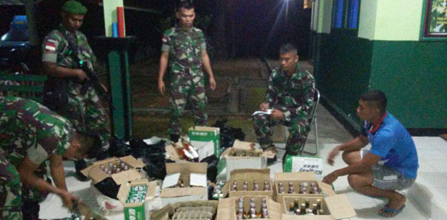 "Dan ternyata barang tersebut berisi minuman keras jenis Lemon Jin, King Way, Bintang, Bir Kaleng, dan Benson. Semuanya tanpa dokumen," terang Kapendam.