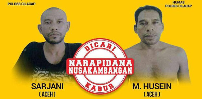 "Kedua napi masih kami cari, saat pakai anjing pelacak terindikasi napui mengarah naik ke atas bukit. Jadi fokus pencarian kami ke kawasan perbukitan dan perairan Pulau Nusakambangan," ujarnya saat live di