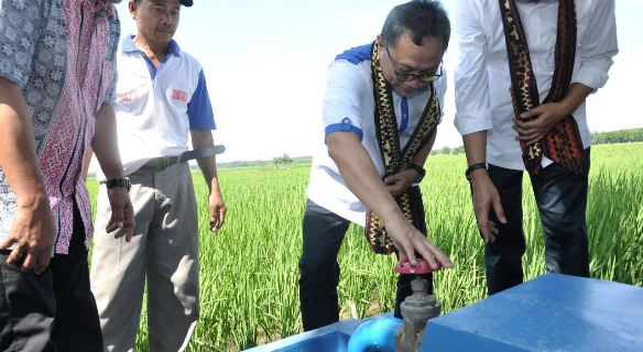 Ketua MPR RI Zulkifli Hasan saat meresmikan bantuan Jaringan Irigasi Air Tanah dari Kementerian PUPR di Desa Rejomulyo, Jatiagung, Lampung Selatan, Jumat (17/2).