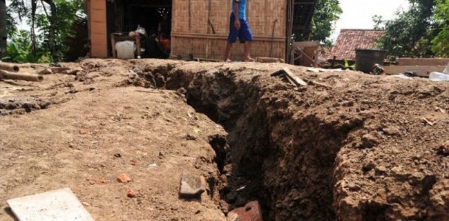 Tanah retak di Dusun Watu Agung, Desa Dayakan semula lebar 30 cm, tepatnya di lingkungan Salam. Tanah retak terus melebar.