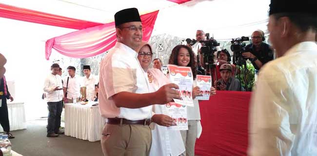 Mereka kompak datang menggunakan kemeja warna putih, Anies sendiri menggunakan peci warna hitam.
