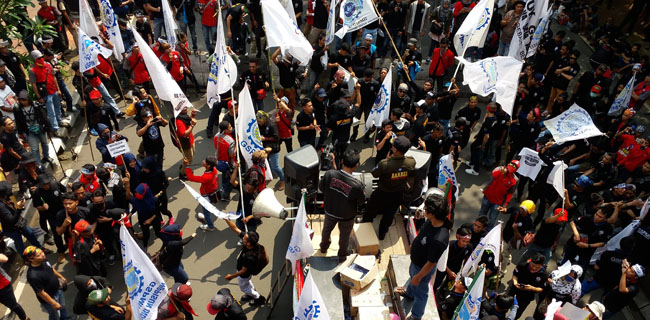 Polisi pun tetap tidak membukakan jalan menuju Istana. Hingga kini ribuan buruh masih memadati kisaran Patung Kuda sambil terus berorasi.