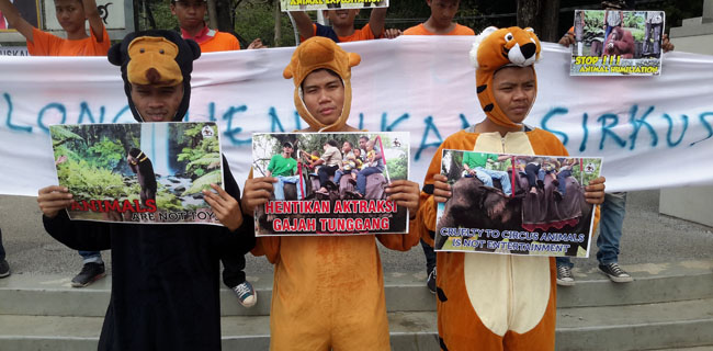 Kepala Divisi Investigasi Scorpion Wildlife Marison Guciano menjelaskan, atraksi satwa diantaranya adalah sirkus harimau, gajah, lumba-lumba, beruang madu dan swa foto dengan harimau dan orang utan yang masih marak berlangsung. Baik di kebun binatang, ataupun sirkus keliling.