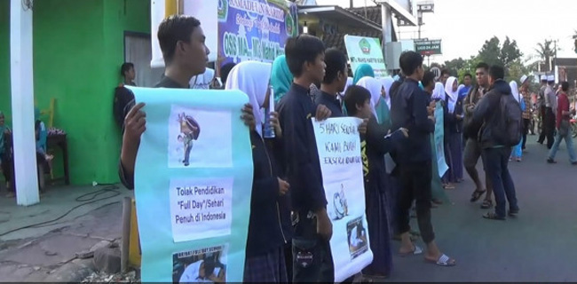 Ini bentuk protes menolak rencana pemberlakuan lima hari sekolah.