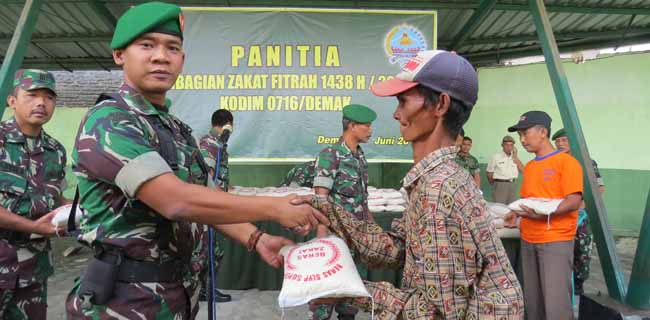 Kegiatan sosial ini sudah rutin dilaksanakan jajaran Kodim 0716/Demak bahwa anggota, baik TNI maupun PNS Kodim, diarahkan menyalurkan zakat fitrahnya kepada masyarakat sekitar.