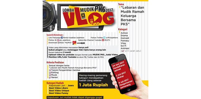 Beberapa syarat dan ketentuan Lomba Vlog Mudik PKS 2017: