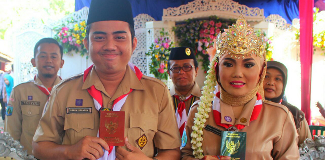 Pengantin itu bernama Salindri Anita Rahman dan Rheza Indratha Debonrat. Keduanya sama-sama anggota Gerakan Pramuka. Pengantin perempuan dari Gerakan Pramuka Kwarcab Ngawi, sedangkan pengantin pria dari Gerakan Pramuka Kwarcab Surabaya.