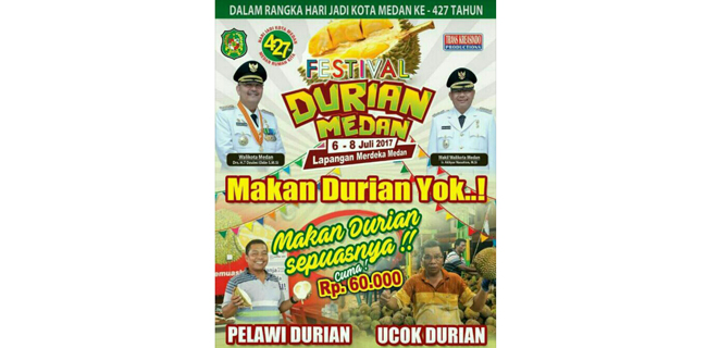Pengunjung Merasa Tertipu Promo Festival Durian Di HUT Kota MedanDirektur PT Trans Kreasindo, Didit Mahadi mengatakan uang Rp 60 ribu yang dikutip untuk masuk ke lokasi festival sudah sangat murah, mengingat buah durian saat ini harganya sangat mahal. Sebab, sekarang sedang tidak musim durian.