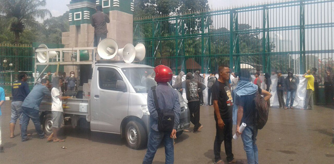 Massa aksi juga menggelar aksi di depan kantor Kementerian Riset, Teknologi dan Pendidikan Tinggi (Kemenristekdikti), Jakarta.