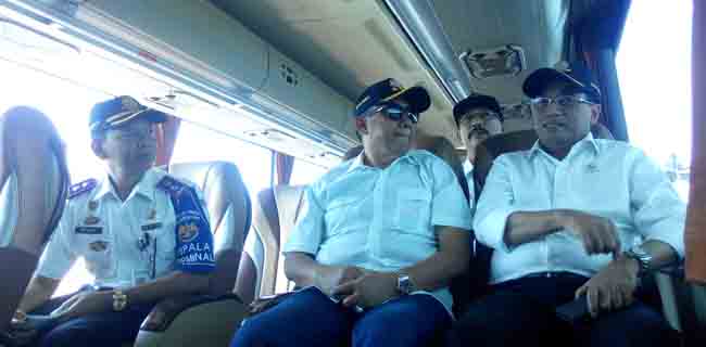 Pantauan di lapangan, BKS meninjau sejumlah fasilitas terminal, mulai dari loket, ruang tunggu penumpang, hingga armada bus double-decker.