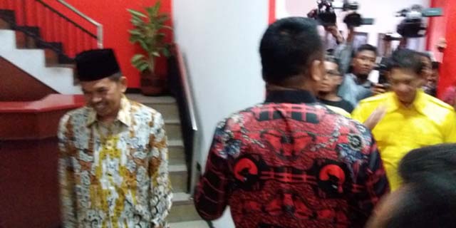 Kedatangan Dedi dan pengurus Golkar Jabar disambut hangat Ketua DPD PDIP Jabar, TB Hasanuddin dan Sekretaris DPD PDIP Jabar, Abdy Yuhana.