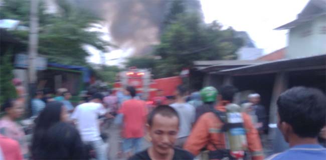 Kantor Berita Politik RMOL, kepulan asap hitam masih membubung tinggi di wilayah tersebut. Kobaran api juga masih terjadi.