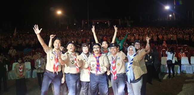 "Jadilah pemimpin yang mempermudah Gerakan Pramuka, bukan mempersulit," tegasnya disambut tepuk meriah ribuan peserta Raimuna.