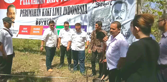 Bismillaahirrahmaanirrahiim, batu pertama Perumahan Kaki Lima Indonesia Boyolali, Jawa Tengah secara resmi saya letakkan," kata Ali Mahsun.