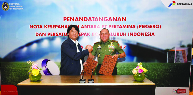 Dukungan Pertamina untuk PSSI ini diawali dengan penandatanganan MoU oleh Direktur Pertamina Massa Manik dan Ketua Umum PSSI Edy Rahmayadi di kantor pusat Pertamina di Jakarta, Selasa (15/8).