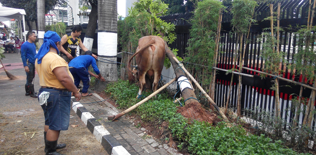 Karena putus asa, panitia memutuskan untuk menyembelih sapi tersebut di lokasi di mana ia ditambatkan