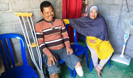 Pria berusia 45 tahun yang bekerja di PT Aneka Loka Indo Tuna ini kehilangan kaki kirinya saat tengah menjaring ikan di tengah malam. Kecelakaan itu terjadi pada awal bulan lalu tepatnya tanggal 8 Januari