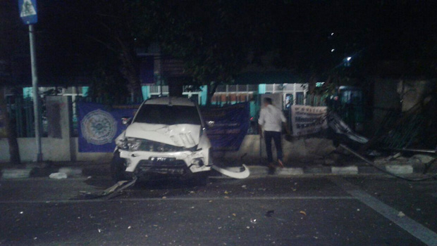Setelah menyalip, lanjut Hendra, nahas mobil jadi tidak terkendali hingga meloncati marka pembatas jalan. "Nabrak pagar SMA Muhammadiyah, terpental ke belakang, berputar 360 derajat. Mundur, nabrak pagar lagi, berhenti posisi menghadap jalan," Hendra bercerita.