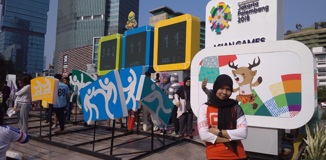 countdown jadwal hitung mundur pelaksanaan Asian Games di Bundaran HI.