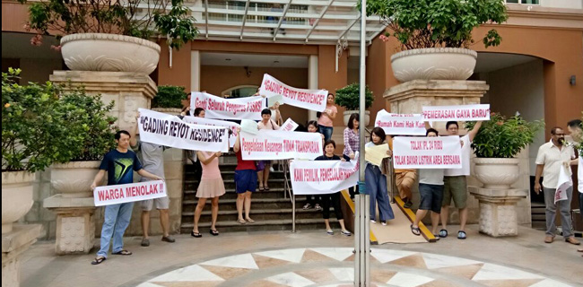 Akhirnya mereka yang juga anggota Perhimpunnan Penghuni dan Pemilik Rumah Susun (PPPRS) Gading Resort Residences melayangkan gugatan ke Pengadilan Negeri Jakarta Utara. Turut digugat Gubernur DKI Jakarta cq.Dinas Perumahan DKI Jakarta