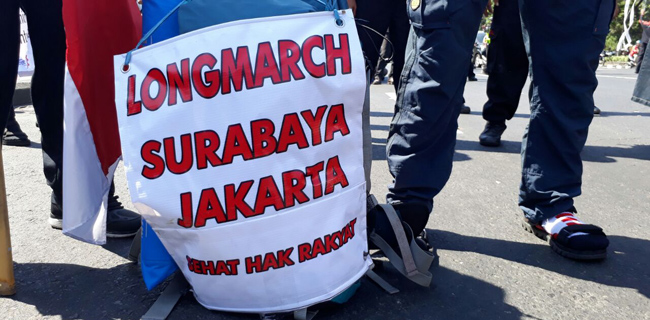 RMOL. Longmarch Surabaya-Jakarta yang dilakukan Direktur Advokasi dan Relawan Jamkeswatch Ade Kenzo mendapat sambutan dan dukungan yang luar biasa baik dari buruh maupun masyarakat.