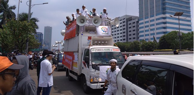 Mobil kiriman Front Pembela Islam (FPI) tersebut mendapat teguran lantaran mobil yang mengarah ke DPR itu memakai jalur kendaraan bermotor arah Slipi.