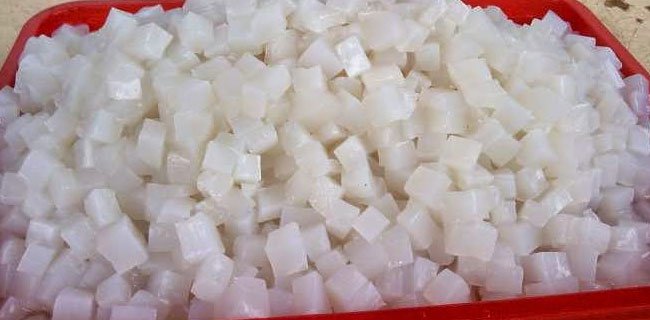 "Prosesnya dicuci, sisanya dibuang. Direndam lagi semalaÂman, besoknya dicuci lagi. Proses pencuciannya berulang-ulang supaya zat-zat yang berbahaya hilang. Makanya dicuci sampai bersih. Habis dipotong-potong masih direÂbus lagi," tambahnya