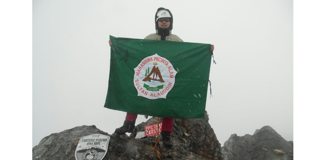 Sekitar pukul 11.32 WIT (Kamis, 5/10), mantan ketua umum Mahasiswa Pecinta Alam Sultan Alauddin (Mapalasta) ini mendahului enam rekannya yang lain tiba di titik 4.884 mdpl. Bukan tanpa perjuangan keras. Sanca, begitu ia akrab disapa, harus menghadapi cuaca ekstrem sejak awal memanjat tebing-tebing curam menjulang dengan ketinggian 1.000 meter dari bawah Lembah Kuning. Bukan lagi hujan air, melainkan es yang terus mengguyur selama proses ascending.
