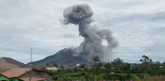 Pos Pengamatan Gunung Sinabung PVMBG melaporkan bahwa letusan itu disertai dengan tinggi kolom abu vulkanik 2.000 meter yang diikuti guguran awan panas dengan jarak luncur 1.500 meter ke arah Selatan dan 2.000 meter ke arah timur dan tenggara.