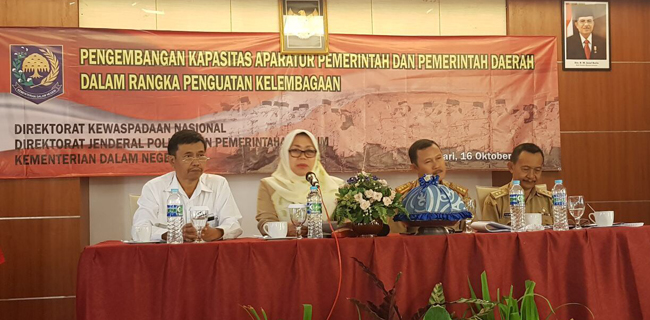"Untuk penguatan elemen masyarakat di daerah dan elemen pemerintah di semua jajaran pemerintah harus disesuaikan anggaran untuk pemberdayaan forum-forum tersebut. Karena urusan keamanan dan ketertiban adalah urusan wajib pemerintah daerah sesuai UU 23 2014 tentang Pemerintahan Daerah. Kegiatan pengembangan kapasitas perlu dianggarkan di tingkat daerah," jelas Kasubdit Fasilitasi Hubungan Antar Lembaga Direktorat Kewaspadaan Nasional Ditjen Polpum Kemendagri Siti Zahro.