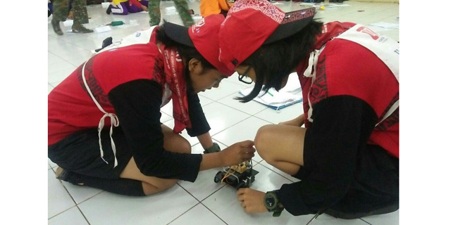 Meski masih kecil, mereka sudah jago merakit robot. Hanya diberi waktu dua jam, robot yang mereka rakit sudah bisa beroperasi dan melenggak-lenggok mengikuti garis yang sudah disiapkan.
