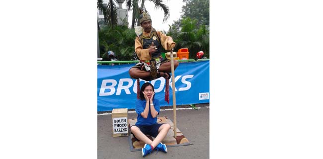 Di sampingnya terdapat kotak yang berisi pesan dengan tulisan 'Jaga Kota Toea Tetap Bersih." Ki Ucup mengakui bahwa pertama kali dirinya melakukan seni levitasi di Kawasan Kota Tua Jakarta, sehingga besar keinginannya untuk menjaga tempat tersebut agar tetap bersih dan indah.