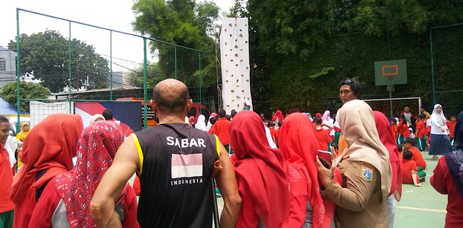Kegiatan panjat dinding ini rangkaian dari acara peringatan Sumpah Pemuda di SD Laboratorium Jakarta.