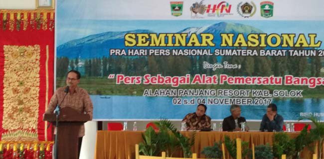 "Data terakhir kami, penguna internet di Indonesia itu 132,7 juta, dengan 129,2 juta diantaranya adalah pengguna media sosial pada level aktif," ujar Gun Gun yang hadir mewakili Sekjen Menkominfo dalam Seminar Nasional Pra HPN Sumatera Barat 2018 bertema "Pers Sebagai Alat Pemersatu Bangsa" di Alahan Panjang Resort, Kabupaten Solok, Sumatera Sumatera Barat, Jum'at (3/11).
